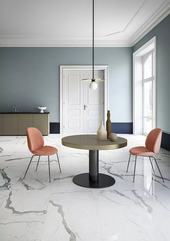 歐洲的室內(nèi)設(shè)計(jì)更多地在探尋家具如何為已經(jīng)精心設(shè)計(jì)的室內(nèi)空間錦上添花。當(dāng)室內(nèi)空間已經(jīng)足夠現(xiàn)代的時(shí)候,設(shè)計(jì)師們會(huì)尋找更加獨(dú)特的設(shè)計(jì)語言來表達(dá),賦予空間獨(dú)一無二的標(biāo)記。一個(gè)簡單又有力的方式就是在房間里的墻上下部分涂上不同顏色的涂料。
