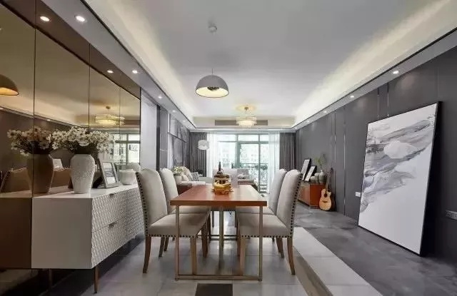 餐廳燈光主要是為了突出美食,可以選用筒燈或者顏值高的吊燈,增加空間的個(gè)性,還能突出食物的美味。為了避免出現(xiàn)餐桌過亮其他區(qū)域過暗的情況,可以增加均勻分布的嵌燈,或者加一盞落地?zé)?,增加漫反射的照明,形成一個(gè)光線柔和的空間 ▼