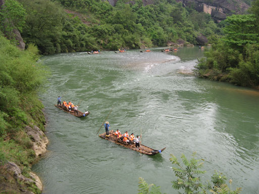 3輛客車,150人的隊(duì)伍,400多公里的路程,到達(dá)了世界文化與自然遺產(chǎn)--武夷山。 武夷山風(fēng)景秀麗,氣候宜人,空氣清新,藍(lán)天、白云、奇山異石、古跡、溪流,處處美景盡收眼底!好山好水好天氣,3天的時(shí)間大致游覽了武夷山的著名景點(diǎn),從天游峰、一線天、虎嘯巖、九曲溪,到最后的大紅袍景區(qū),都讓人流連忘返。