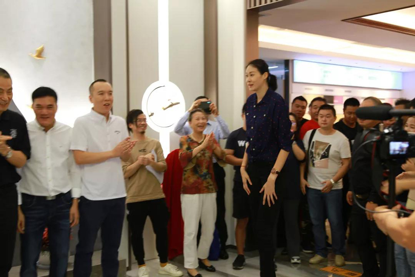 稍后,兩位南鴻特邀嘉賓——世界冠軍趙蕊蕊與吳鵬正式在展廳亮相,大家都因親眼見到他們而激動不已。