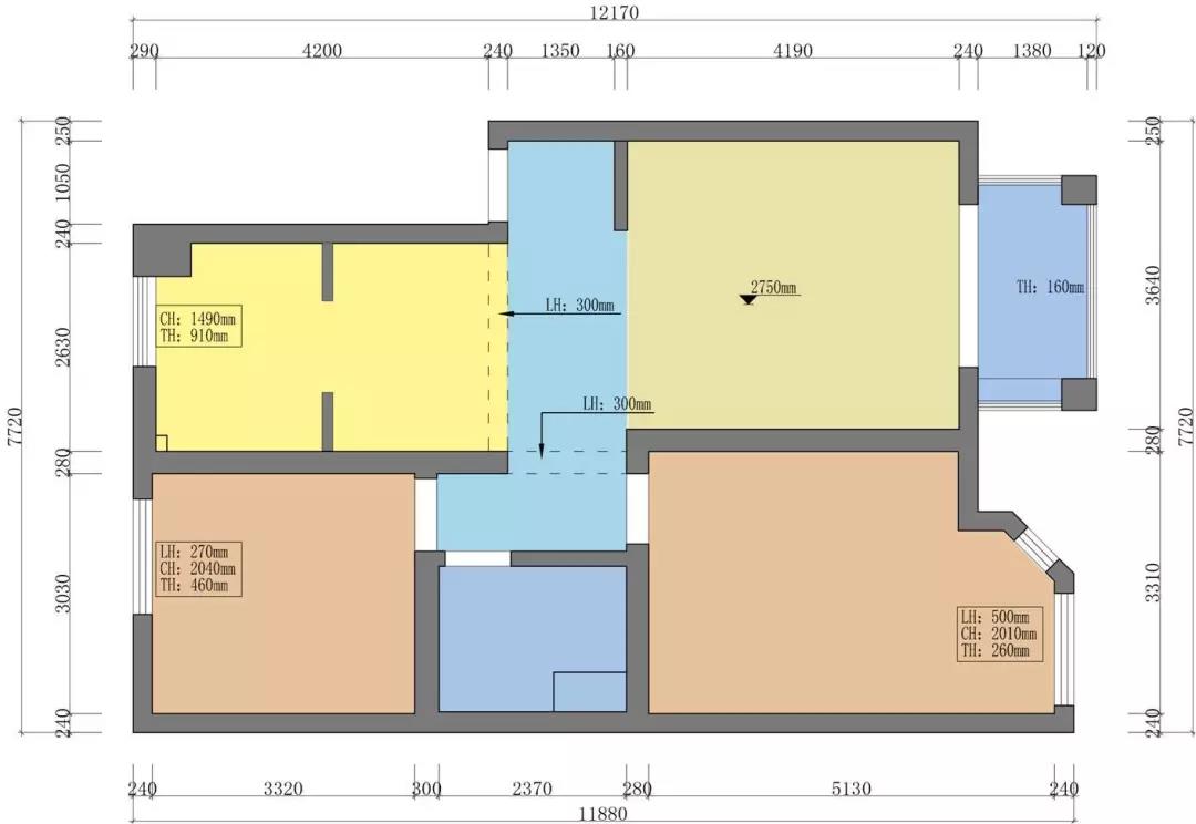 ▲90方框架戶型結(jié)構(gòu),改動(dòng)不多