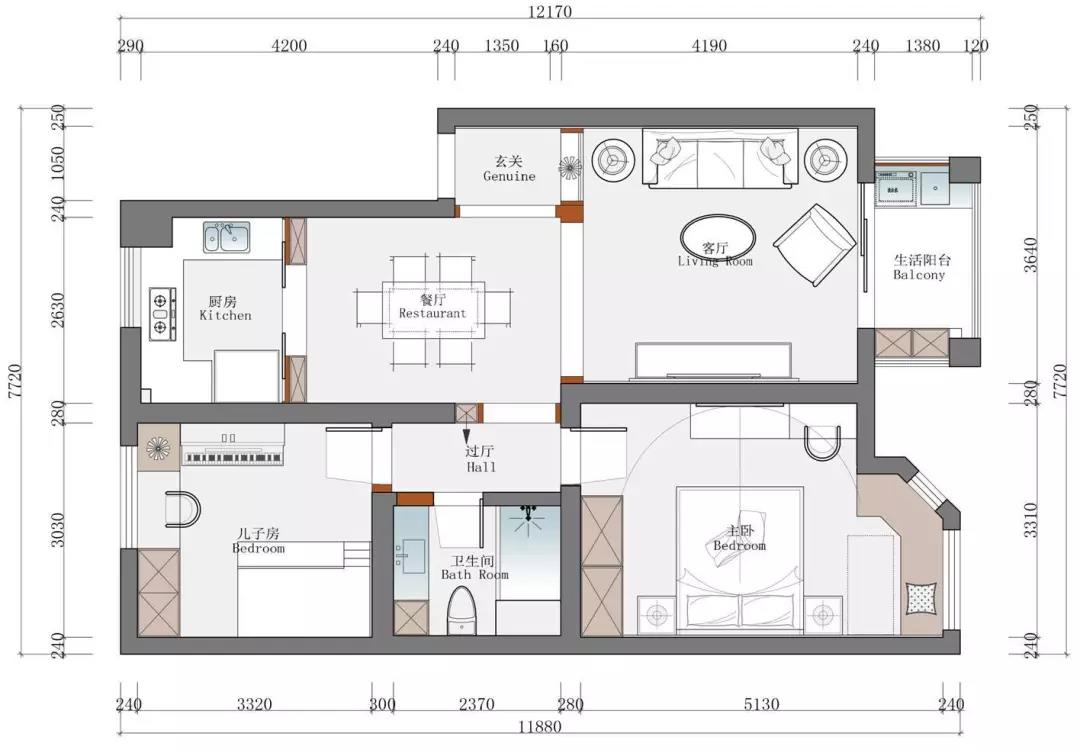 在戶型上,由于是剛需,布局方面并未做過多改動(dòng),主要是新增了儲(chǔ)物系統(tǒng),做了衣柜、衛(wèi)生間臺(tái)盆、酒柜和飄窗柜,使居室實(shí)用與美觀兼?zhèn)洹?/span>