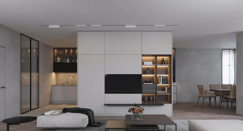 柜體如果全做開放式,會非??简炛魅说拇钆涔α?,搭配不當(dāng)只會增添視覺疲勞感;全做封閉式,可能會略顯單調(diào)。因此“封閉”與“開放”做3:1的比例最好。