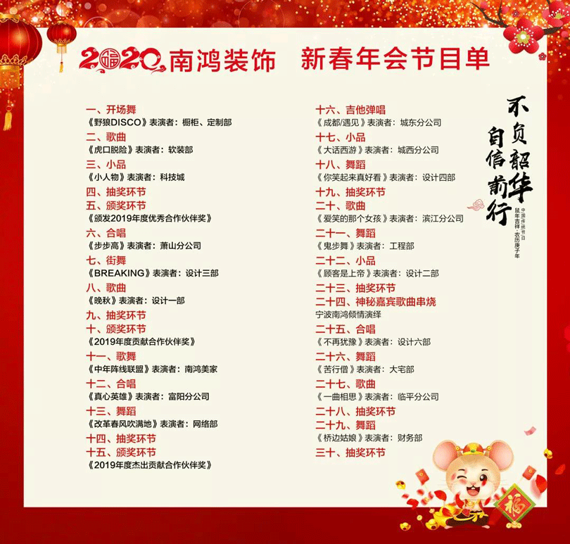 以一場(chǎng)璀璨有儀式感的歲末盛宴回饋2019、迎接2020。南鴻裝飾領(lǐng)導(dǎo)班子及所有員工千余人歡聚一堂,暢敘情誼,表彰先進(jìn),共話(huà)未來(lái)。南鴻裝飾董事長(zhǎng)祝旭慷,杭州地區(qū)總經(jīng)理李惠華及寧波地區(qū)總經(jīng)理鮑世利等先后發(fā)表新年致辭。