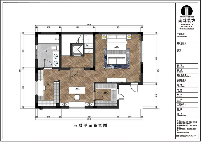 主臥在三層,背景以一副山水畫徐徐展開,搭配傳統(tǒng)的中式床與同色系地毯,碰撞出富有人文氣息兼具現(xiàn)代品質(zhì)感的詩意禪韻。