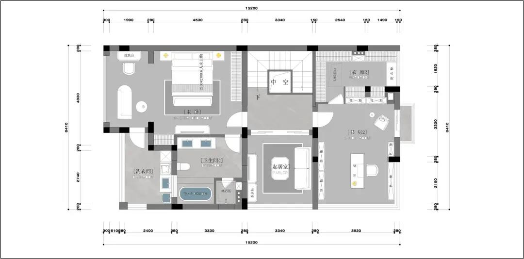 二樓是女兒的開放式臥室空間,樓梯本身做了懸浮設計,效果超級美觀!