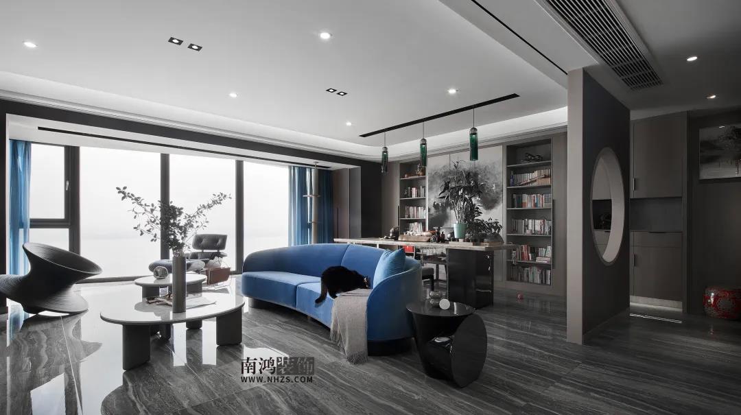 地址 / 觀瀾時(shí)代 戶型 / 三室兩廳 面積 / 190㎡ 風(fēng)格 / 現(xiàn)代中式 設(shè)計(jì)施工 / 浙江南鴻裝飾 幸福的家庭總是相似的, 但幸福的定義, 對每個(gè)人來說或許都不盡相同。 對本案的女屋主來說, 窗外是海天一線的絕色風(fēng)景, 窗內(nèi)是三只愛貓的追逐嬉戲, 閑來品茶凝思,翻卷細(xì)讀, 就這樣把日子過成了一首詩。 本案結(jié)合現(xiàn)代風(fēng)的輕奢時(shí)尚與中式風(fēng)的古典雅致,色彩搭配上也不落俗套,整體取用冷硬中性色的基礎(chǔ)上,各個(gè)空間都加入了許多個(gè)性色彩,層次感非常強(qiáng)! 戶 型 圖 ▲原始戶型圖 ▲平面設(shè)計(jì)圖 設(shè)計(jì)說明: ①餐廚之間新建墻體,增加儲藏室的空間; ②客廳包進(jìn)陽臺做落地窗,將房子的景觀優(yōu)勢發(fā)揮到最大; ③公區(qū)域通往臥室的內(nèi)廳過道整體往南移,主臥釋放一部分面積留給客房,平衡主客房的空間大小。 玄 關(guān) Entrance 原戶型中并沒有玄關(guān)區(qū)域,我們在茶室旁砌筑了這道168cm*235cm的墻體,以中式常見的借景手法打造門廳,并將茶室區(qū)的柜子延伸過來作玄關(guān)柜使用。 客 廳 Living Room 一氣連江色,寥寥萬古清。客廳將陽臺包進(jìn)做落地窗,再加一把面料舒適的躺椅,每日觀覽著江波浩渺,俗世的煩擾轉(zhuǎn)瞬就能被驅(qū)散得干干凈凈。 湖水藍(lán)的弧形沙發(fā),橡木大理石結(jié)合的茶幾,黑色烤漆角幾,陀螺椅......客廳內(nèi)各色材質(zhì)多樣、姿態(tài)各異的家具被有序排列著,再加上綠植點(diǎn)綴,空間在干練精致之余,更顯出生機(jī)勃勃的氣息來。 沙發(fā)背后便是因女主人愛好而特意設(shè)置的休閑茶室區(qū)了,背景的藝術(shù)壁畫烘托雅致氛圍,兩側(cè)書柜用來收納主人心愛的藏書,靠近陽臺的地方還做了貓爬架,喵主子們當(dāng)然也不能怠慢啦~ 餐 廳 Dining Room 餐廳做島臺餐桌一體式設(shè)計(jì),實(shí)用性和使用感都很好,黑白搭配帶來明凈的視感,自然的石材肌理配合空間情境,更顯素雅沉靜。 廚 房 Kitchen 廚房,淺色模壓櫥柜門帶來輕盈、舒緩的視覺體驗(yàn),黑色把手干凈利落,頂部做白色集成吊頂,空間更加明亮。 廚房靠近餐廳的地方延伸出去做了一塊西廚區(qū),吧臺搭配高腳凳,閑時(shí)品一杯紅酒,嘗一嘗親手做的糕點(diǎn),別有一番情趣。 臥 室 Bedroom 芥末黃提供主臥進(jìn)門的第一視感,帶來鮮活的生命力,也是主人對美好生活的積極期許。 主臥真是滿滿的女王氣質(zhì)!宮廷色鋪底,背景墻結(jié)合浮雕質(zhì)感的凹凸藝術(shù)硬包,個(gè)性特質(zhì)拉滿,窗邊設(shè)置獨(dú)立浴缸,品質(zhì)生活更上一層樓。 融合多種材質(zhì)元素,以現(xiàn)代風(fēng)格的利落表現(xiàn)結(jié)合中式古典的優(yōu)雅個(gè)性,成就別具一格的氛圍感。 黑色鐵藝百葉窗搭配黑白花磚,陽光從間隙里參與進(jìn)來,空間里點(diǎn)滴都是時(shí)光流淌歲月如歌的美好記憶。 床尾的梳妝空間,奶黃色背景搭配梅紅的矮凳和水藍(lán)色梳妝臺,飽滿的色彩極具張揚(yáng)個(gè)性。 客房,淺青色背景結(jié)合藤編材質(zhì),營造清朗舒適的睡眠環(huán)境,宛若美好的早春時(shí)節(jié)。 衛(wèi) 生 間 Toilet 衛(wèi)生間墻地面由石紋瓷磚鋪就,深淺不一的灰色打造層次感,整體空間明亮,現(xiàn)代感強(qiáng)烈。