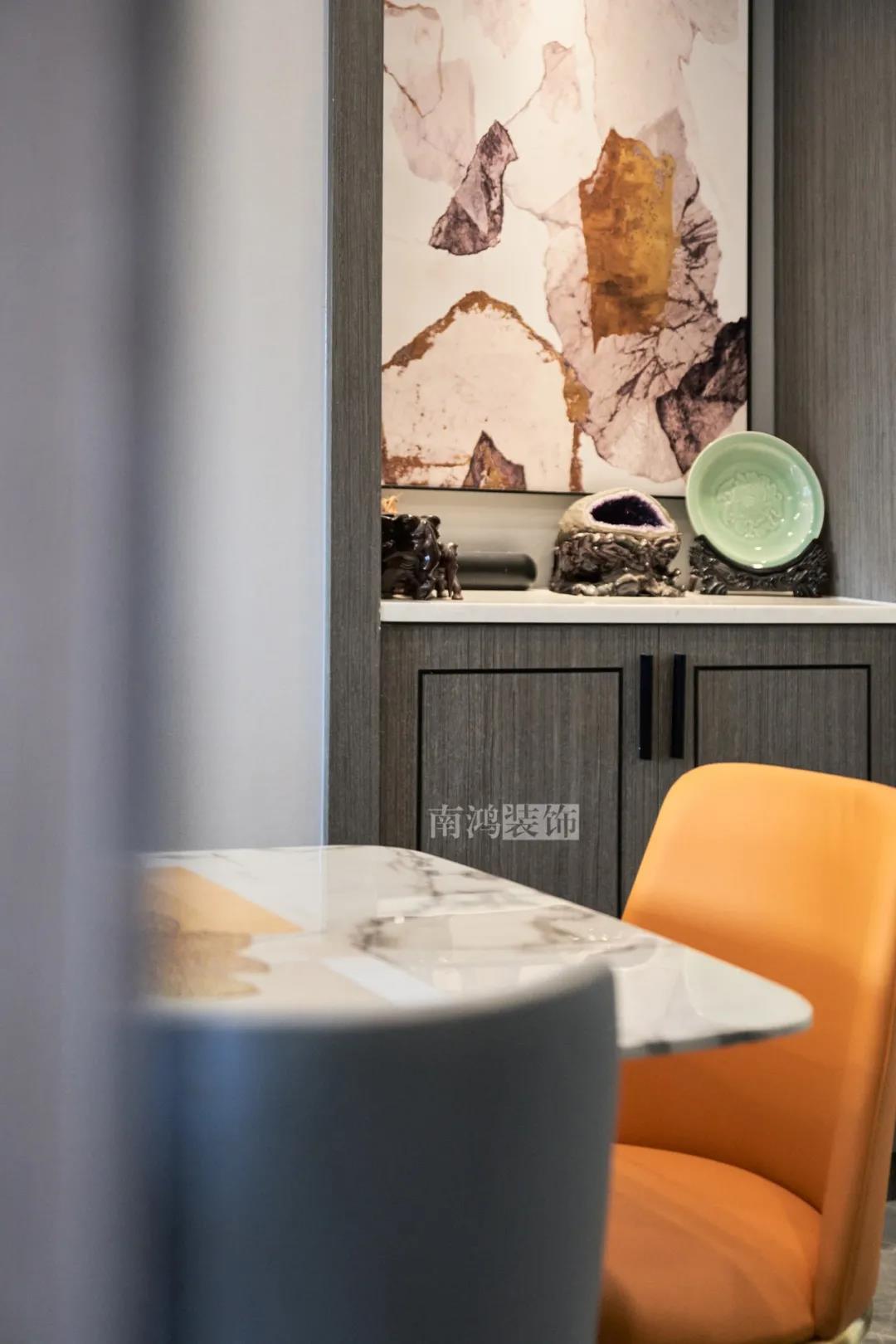 本案的主材有大理石,木飾面,金屬,絨布,皮革等,整體大氣美觀,黑白灰中點(diǎn)綴有寶藍(lán)、愛馬仕橙等個(gè)性色彩,質(zhì)感細(xì)節(jié)融匯于整個(gè)空間。