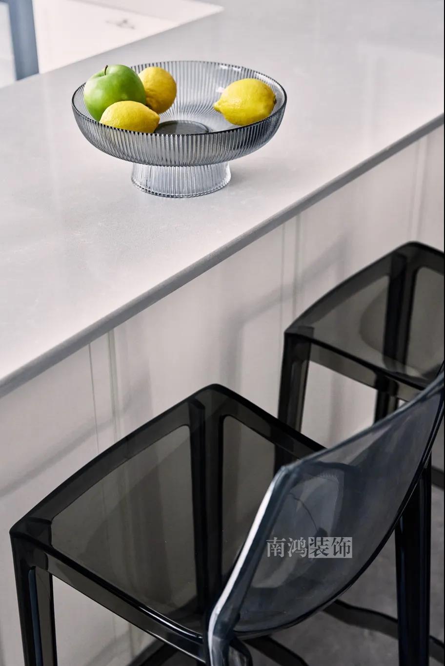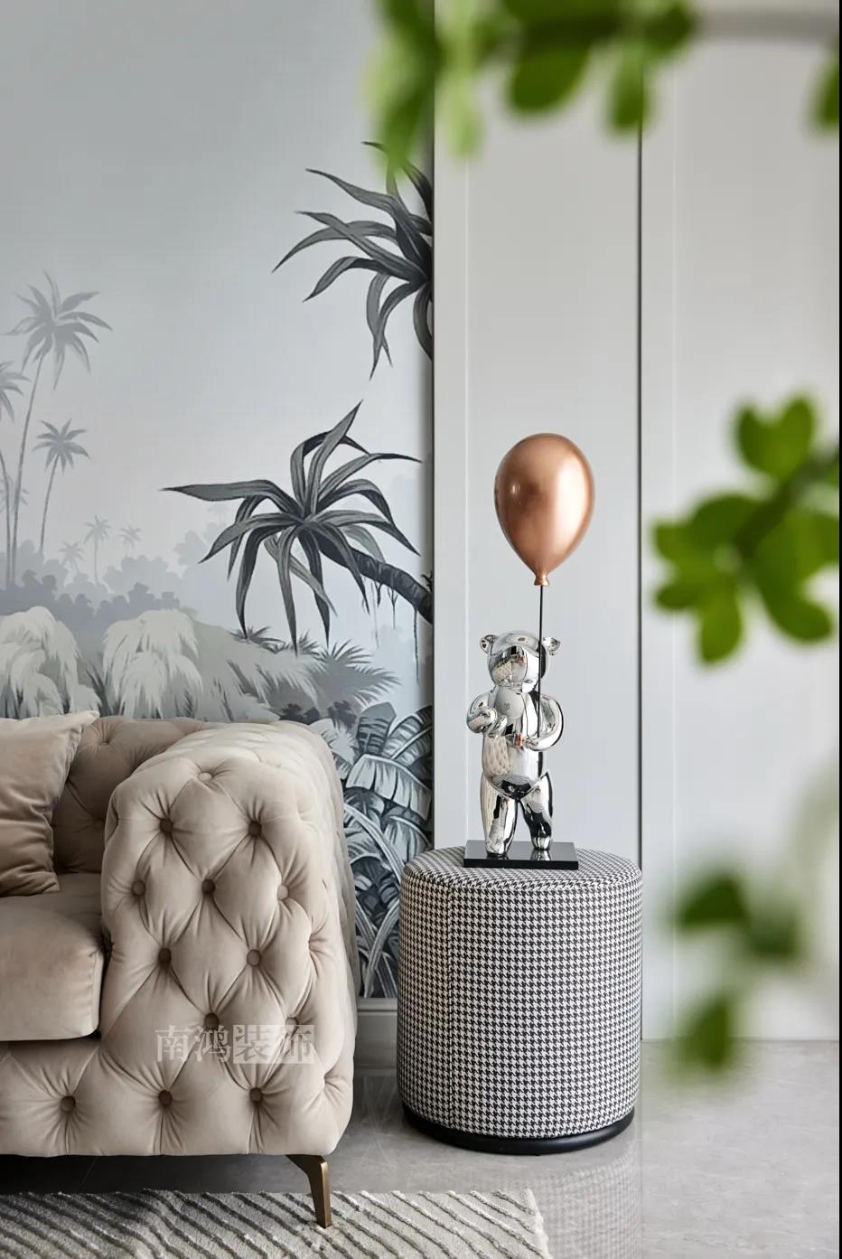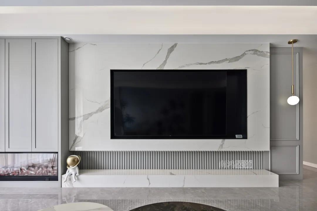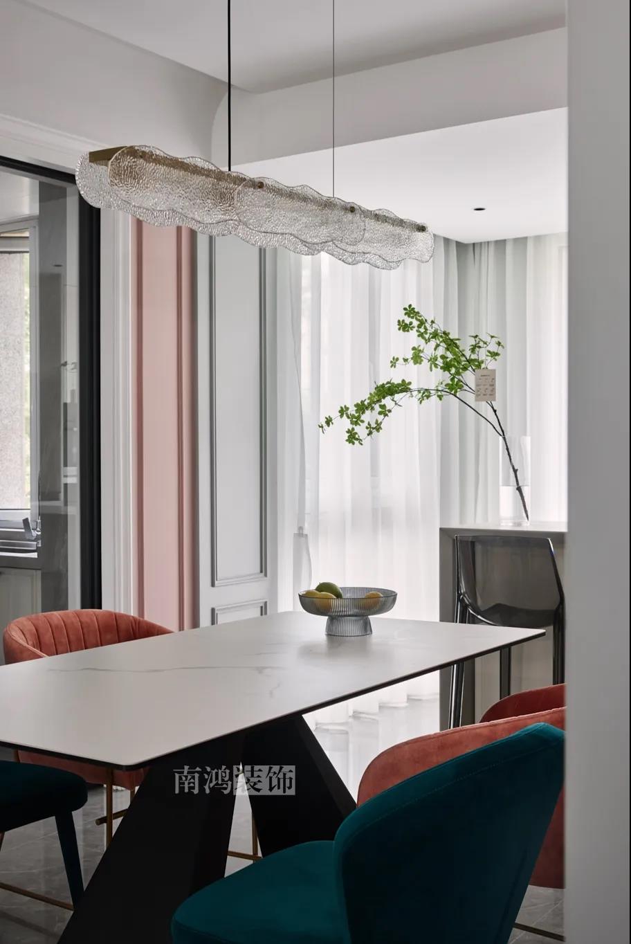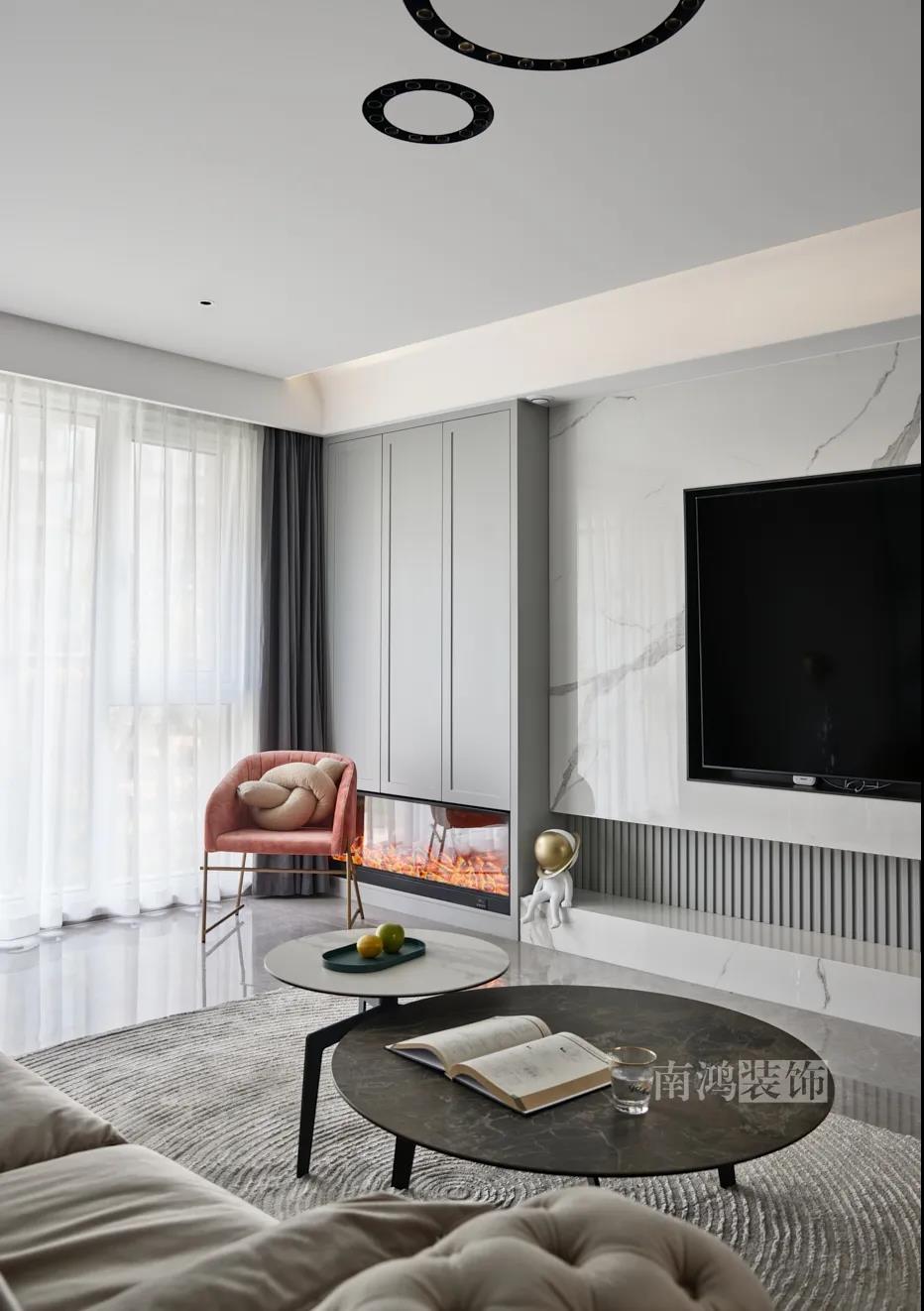 01. 客戶需求 本案的屋主非常喜歡小美式風(fēng)格的清新自在,又向往著現(xiàn)代簡(jiǎn)約所傳達(dá)的生活理念,所以設(shè)計(jì)師依照他的喜好,將兩種風(fēng)格元素巧妙糅合,讓整體空間在浪漫優(yōu)雅的情調(diào)中傳遞出主人的獨(dú)特品味。 02. 裝飾亮點(diǎn) REFRESHING 擯棄了粗暴的材質(zhì)堆砌,將小美式與現(xiàn)代簡(jiǎn)約巧妙結(jié)合在一起,色調(diào)上選用低飽和度的高級(jí)灰與柔和的莫蘭迪色,致力于呈現(xiàn)一個(gè)唯美純粹、具備高級(jí)感的美學(xué)空間。 03. 戶型圖 04. 設(shè)計(jì)落地 客 廳 客廳以高級(jí)灰為主基調(diào),低飽和度的特性使得它具備很強(qiáng)的包容性。 電視背景將美式的經(jīng)典線條護(hù)墻與利落的大理石磚組合,沙發(fā)背景則做了木護(hù)墻隱形門處理,配以簡(jiǎn)單干凈又不減細(xì)節(jié)的吊頂,既實(shí)現(xiàn)了兩種不同風(fēng)格元素的結(jié)合,又能讓造型為居家功能服務(wù)。 靠近陽(yáng)臺(tái)擺放一把亮麗單椅,電子壁爐內(nèi)躍動(dòng)著溫暖的火苗,成為美妙的休憩一角。 節(jié)制而有意蘊(yùn)的設(shè)計(jì)手法,賦予空間最具詩(shī)意的內(nèi)涵表達(dá)。 開放的領(lǐng)域中,客餐之間連貫而又相對(duì)獨(dú)立,在敞闊的尺度中讓主人感受到家的舒適。 餐 廳 餐廳,是讓人走近便頓覺眼前一亮的空間所在?;ǘ浒銒赡鄣臒煼凵悄m迪色系中超有存在感的一派,又如晚霞,純凈美好,撲面而來(lái)便是夢(mèng)幻與浪漫的氣息。 餐廳處還添加入西廚的功能,讓廚房實(shí)現(xiàn)多功能化,同時(shí)弱化了原區(qū)域的狹長(zhǎng)感。 過 道 “人生忽如寄,莫辜負(fù)茶、湯和好天氣。”清朗平和的過道景致,自給人一種寧?kù)o的深邃感受。 臥 室 臥室刪繁就簡(jiǎn),通過淺色的床品與干凈的硬包背景,營(yíng)造簡(jiǎn)約純粹的清韻。 兒童房是一個(gè)多姿多彩的空間,活潑的星星圖案,多種低飽和色調(diào)搭建的背景墻面,整體氣氛輕松愉悅,作為一個(gè)成長(zhǎng)型空間來(lái)說也充滿著可塑性。 衣 帽 間 純白的視象,抽離了所有多余的表達(dá),兩側(cè)衣柜默默擔(dān)當(dāng)著收納的使命,井然有序地包容著一切冗雜。