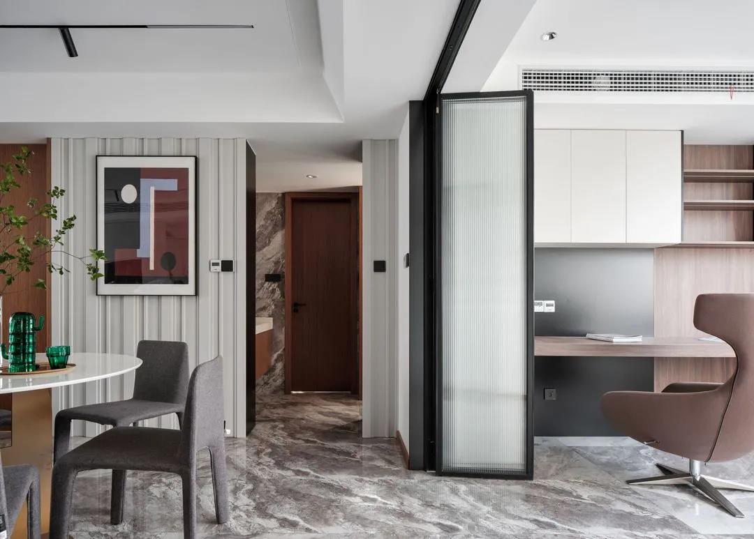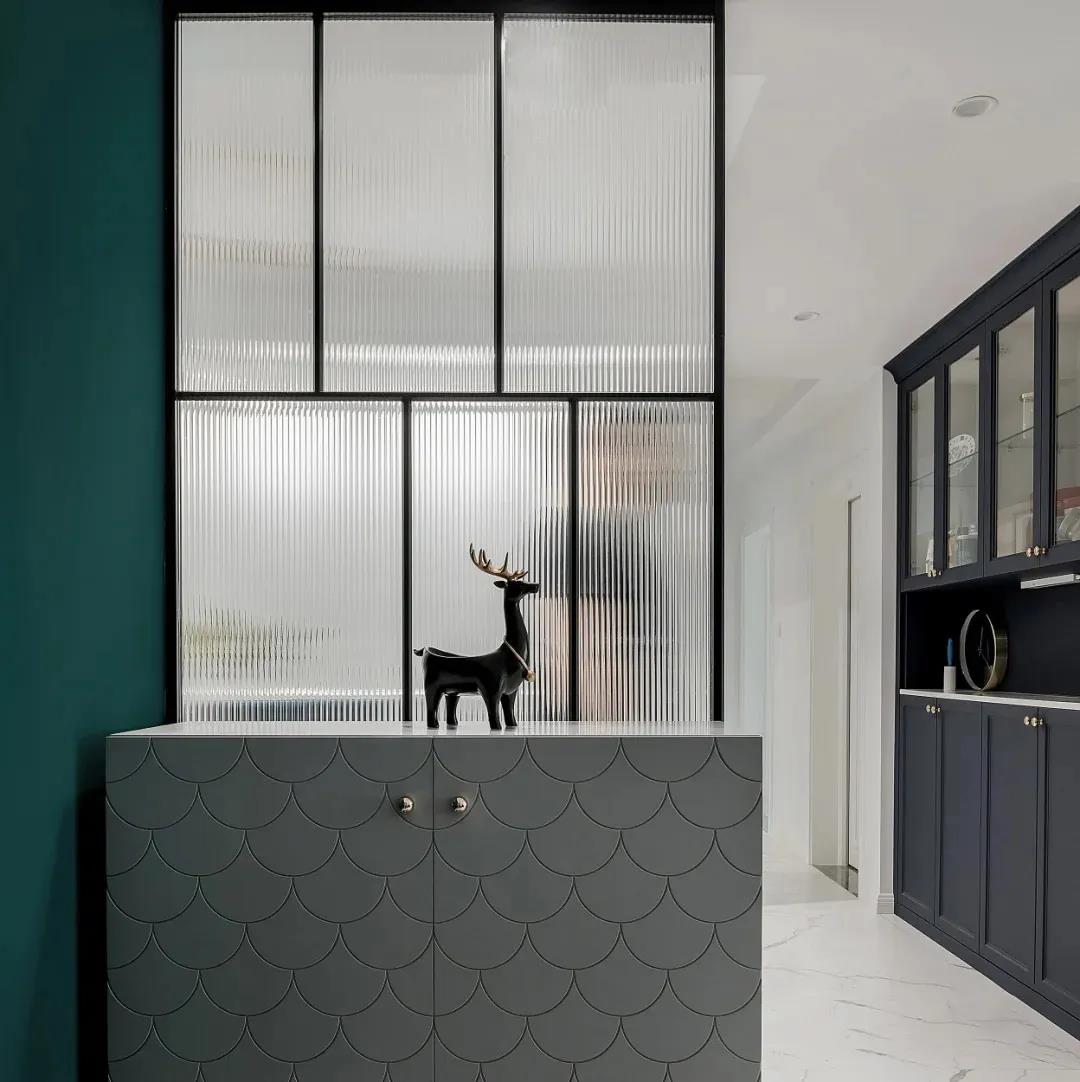 豎條紋壓花玻璃的“豎”,會(huì)比其他幾何線條更容易帶來(lái)“高”的心理暗示,且它作為隔斷或者移門(mén)時(shí),會(huì)使空間看起來(lái)敞亮,實(shí)現(xiàn)各空間的和平相處。