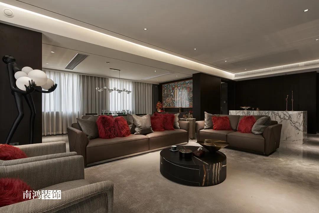 遠(yuǎn)洋雁歸里是我們王冬萍老師的一套現(xiàn)代輕奢風(fēng)格的別墅作品。輕奢風(fēng)是一種格外優(yōu)雅的生活基調(diào),也是居者面對(duì)喧囂世界時(shí)寧?kù)o從容生活態(tài)度的一種外現(xiàn),高貴又有質(zhì)感。