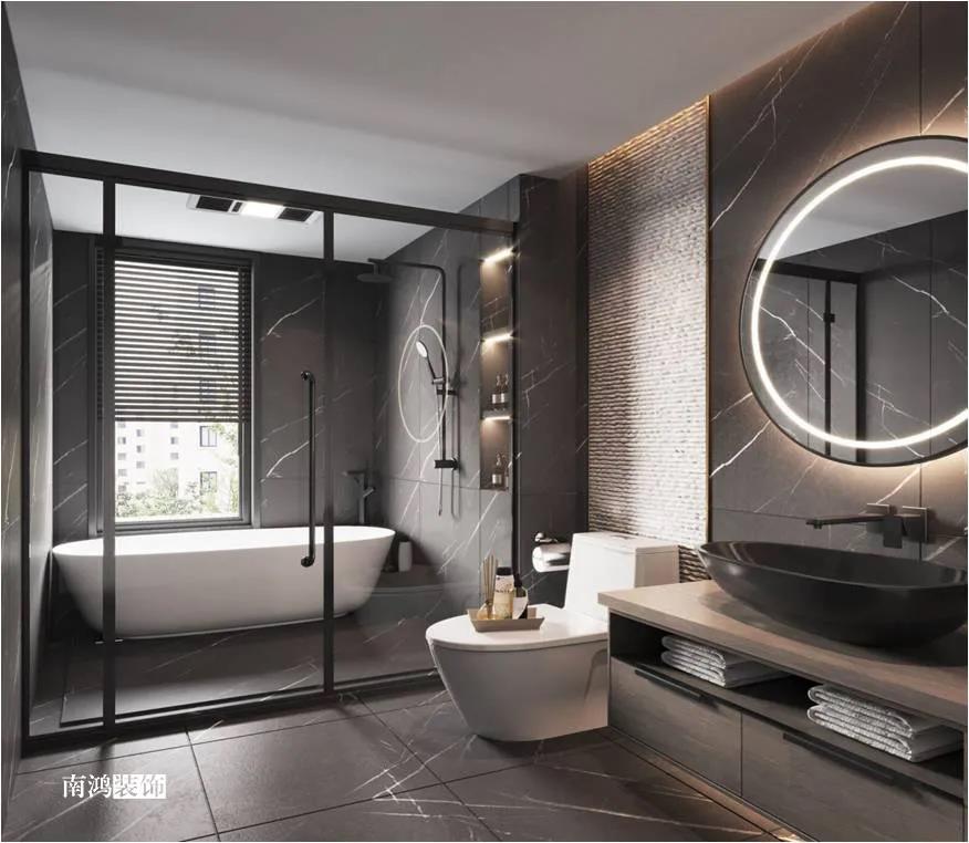 室內(nèi)色彩以黑白灰色調(diào)為主,冷色調(diào)給人安靜的感覺,適合屋主一個(gè)人靜下心來看書、品茶,同時(shí)也放大了空間。裝飾上采用的大理石、金屬嵌條、銀鏡等元素,也有利于營(yíng)造全屋的輕奢氛圍。