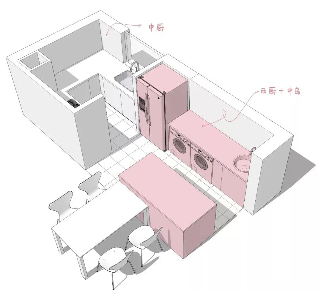 另外,如果你對(duì)吧臺(tái)情有獨(dú)鐘的話,也可以將其與西廚區(qū)結(jié)合起來(lái)哦~