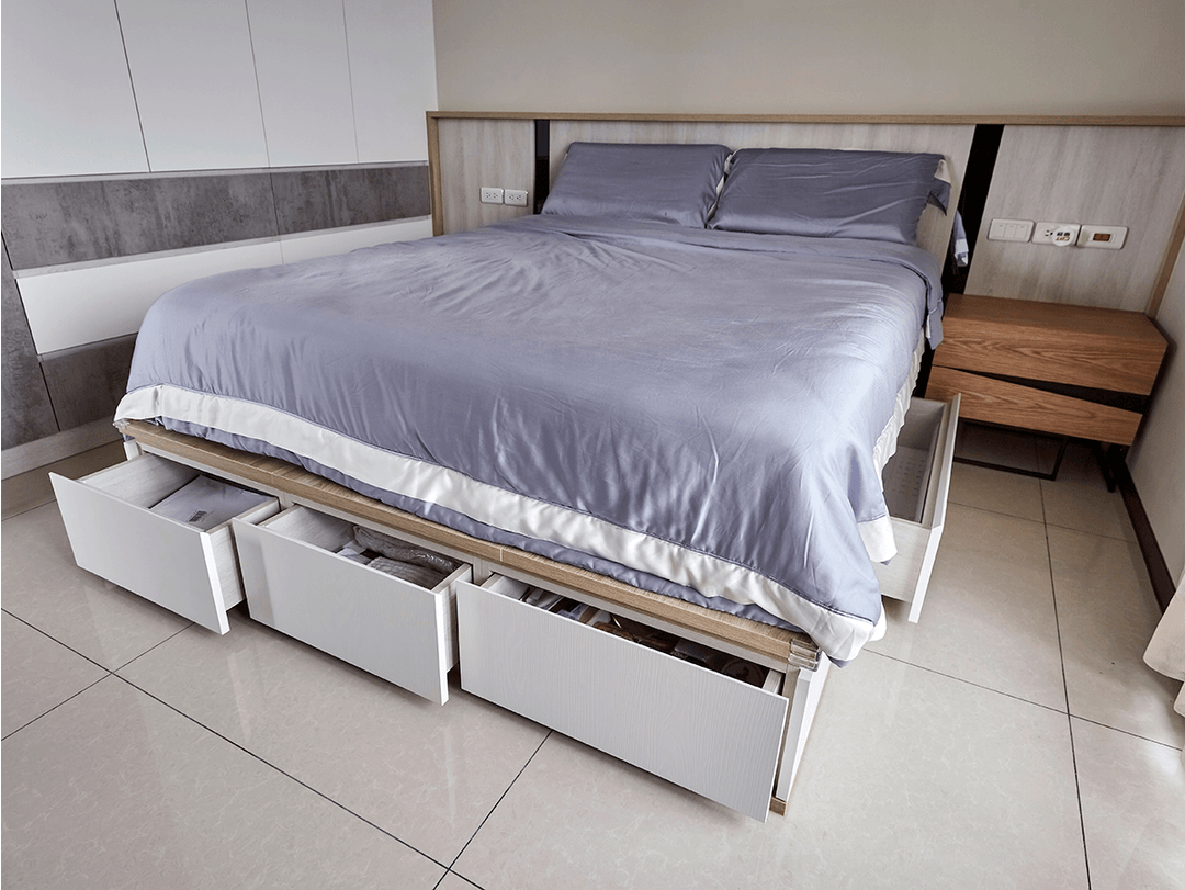 另外,床頭背景墻、床底空間等都可以利用起來(lái)。