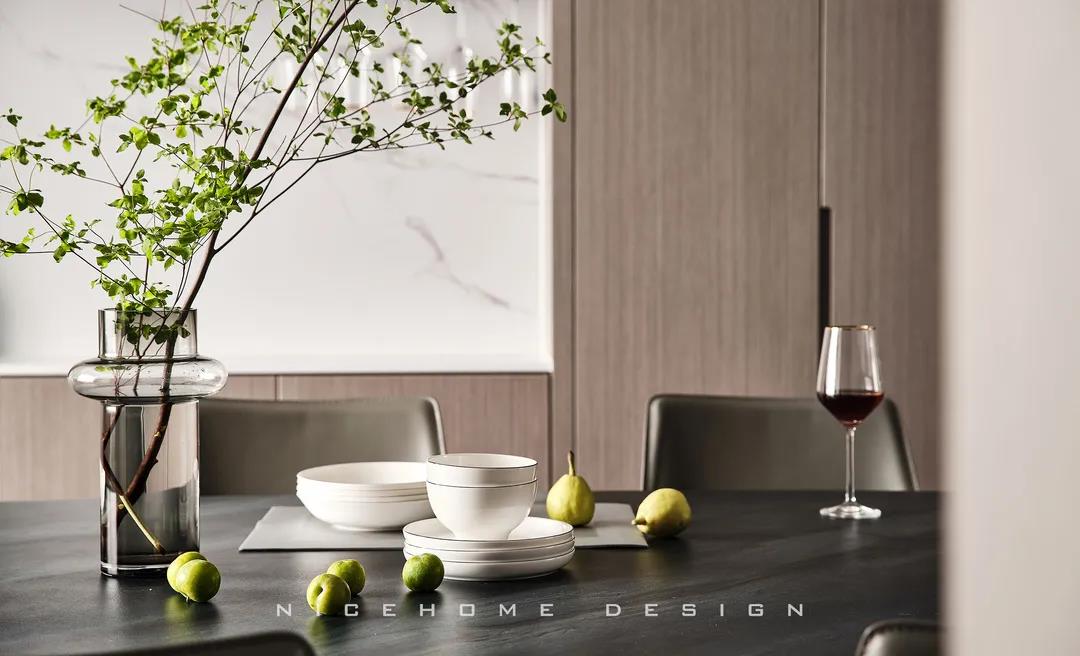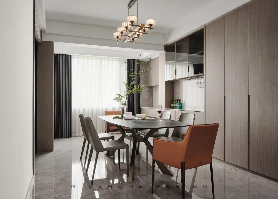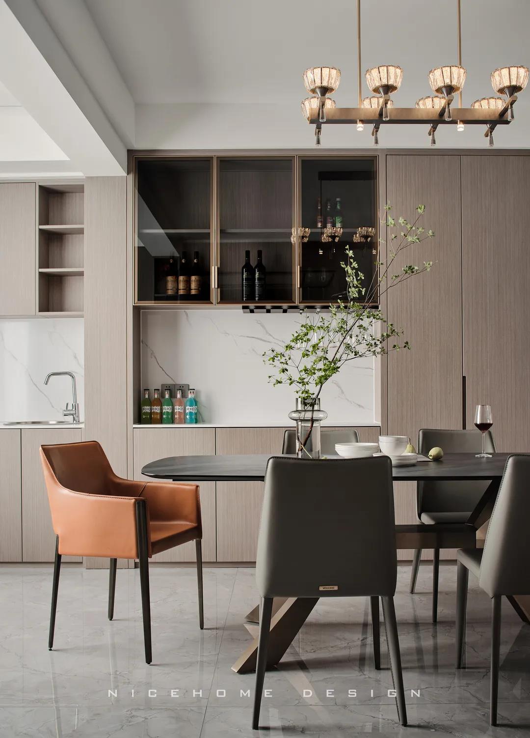 【項(xiàng)目·信息】 地址 / 銀億東岸 戶型 / 四室兩廳 面積 / 200㎡ 風(fēng)格 / 現(xiàn)代簡(jiǎn)約 設(shè)計(jì)施工 / 浙江南鴻裝飾 1 關(guān)于作品 本案以現(xiàn)代簡(jiǎn)約為主題,簡(jiǎn)潔明快的設(shè)計(jì)風(fēng)格為主調(diào),著力體現(xiàn)家的精致與個(gè)性,符合現(xiàn)代人的生活品味。 公共區(qū)域整體采用暖咖和黑、白色調(diào),溫和親切又帶著現(xiàn)代感的利落灑脫,木格柵增強(qiáng)視覺(jué)效果,軟裝上則重點(diǎn)用橙色點(diǎn)綴,烘托溫馨氣氛與活力感受。 2 戶型圖 3 設(shè)計(jì)落地 玄關(guān) ENTRANCE 玄關(guān)端景處一幅格外醒目的復(fù)刻畫(huà),大色塊的紅彰顯熱烈、前衛(wèi),寓意主人對(duì)新生活的愛(ài)和熱忱,從今往后,要把每一天都過(guò)得“熱氣騰騰”! 客廳 LIVING ROOM 客廳,暖咖色伴隨著溫柔的觀感,讓時(shí)光也仿佛靜止于此。沒(méi)有特別多收納設(shè)計(jì),這里的一切布置均以“美”為第一要義。 電視背景墻的設(shè)計(jì),低調(diào)中透著華麗。高顏值的大理石磚搭配錯(cuò)落有致的木格柵,冷暖結(jié)合,細(xì)節(jié)處再點(diǎn)綴光影,簡(jiǎn)潔而富有格調(diào)。 木質(zhì)格柵,素來(lái)自帶一種東方禪意之美,虛實(shí)相生,正是架構(gòu)意境的獨(dú)到方式。木飾面板中藏起通往次臥的房門(mén),視覺(jué)高度統(tǒng)一。沙發(fā)與茶幾選擇低矮款式,有利于縱向拉伸層高。 餐廳 DINING ROOM 一個(gè)優(yōu)秀的餐廳,光靠視覺(jué),就能成功挑動(dòng)你的味蕾,再平凡的食物也因此裹上了一層美好滋味。 整排餐邊柜兼做酒柜,玻璃柜內(nèi)藏酒,儲(chǔ)物柜里存放食品,實(shí)用性與美觀度都是一流。窗邊做了小水吧,延續(xù)廚房的功能,餐前餐后的手部清潔也更方便。 在這里每天給孩子做一頓愛(ài)心早餐,給愛(ài)人煮一壺香醇的咖啡,幸福的感覺(jué)就這樣漸漸氤氳開(kāi)來(lái)。 廚房 KITCHEN 廚房寬敞明亮,黑色櫥柜較一般櫥柜而言更能凸顯質(zhì)感,功能設(shè)備完善,在吊頂上也做足了功夫,造型感與線條感呼應(yīng)整體風(fēng)格。 過(guò)道 CORRIDOR 溫潤(rùn)的木材非常容易給人親近的感覺(jué),無(wú)形中就消弭掉空間與居者的距離。過(guò)道一側(cè)設(shè)計(jì)儲(chǔ)物區(qū)域,層架上適合擺放書(shū)籍、小飾品等,空間瞬時(shí)生動(dòng)了起來(lái)。 臥室 BEDROOM 主臥延續(xù)公共區(qū)域的色調(diào),米灰色硬包和木飾面,讓溫暖、淡雅的味道徘徊其中。一盞暖意小吊燈垂下,增強(qiáng)空間的調(diào)性,小飄窗則賦予臥室更多的浪漫色彩,和對(duì)生活的美好想象。 次臥,皮藝、布料、金屬與線條的融合,交匯出高品質(zhì)精致感。 粉色是兒童房一直在流行的主題,許多女孩子的夢(mèng)里或許都有這樣一個(gè)如童話般的飄著粉紅泡泡的房間吧~