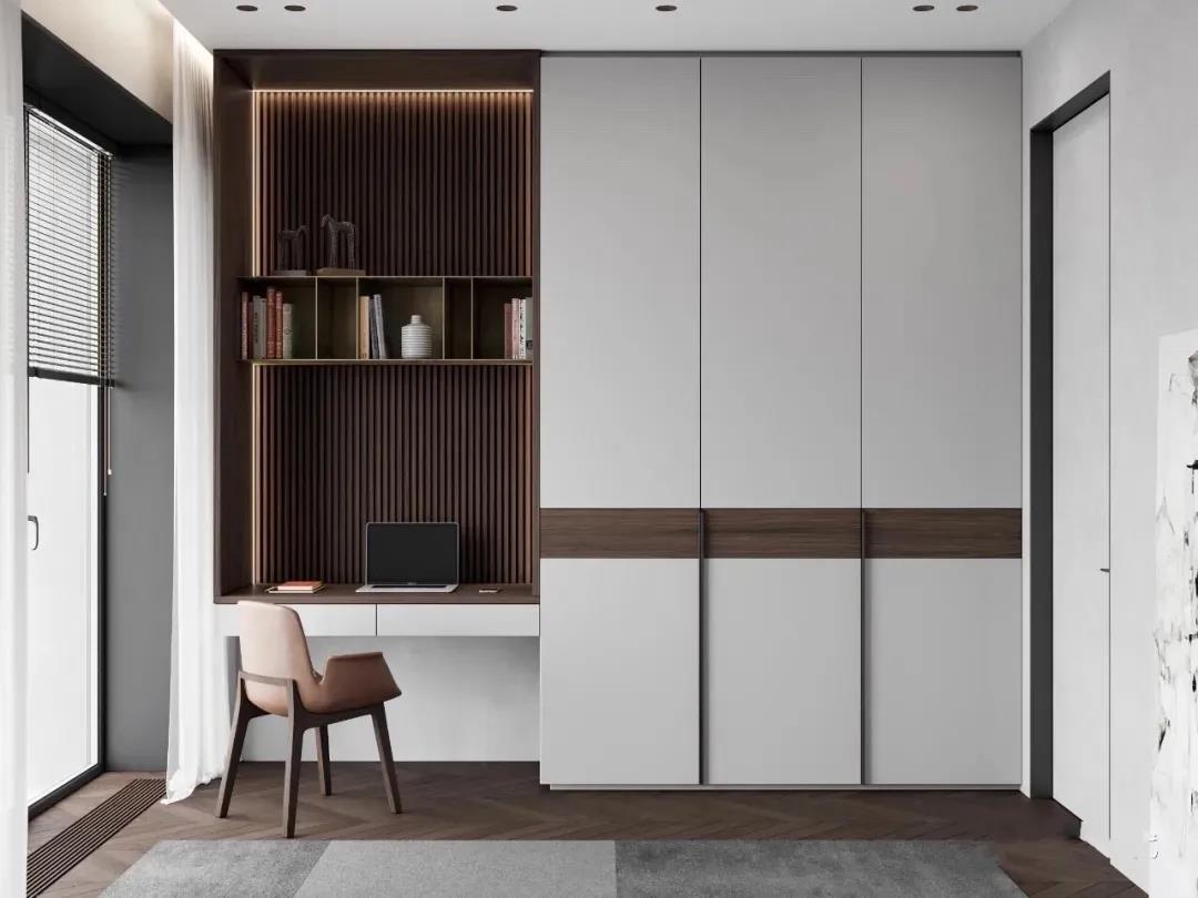 除了可以大范圍鋪展,木格柵在小范圍內(nèi)使用也不錯(cuò),典型的就是用作柜門。
