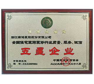 全國(guó)住宅裝修行業(yè)質(zhì)量、服務(wù)、誠(chéng)信五星企業(yè)